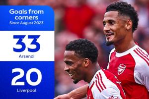 體育資訊08月24日訊 天空體育統(tǒng)計了自2023年8月以來,英超各隊通過角球取得的進球數量,阿森納33球居首。