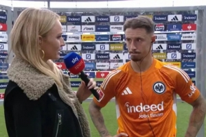 此前不萊梅在德甲慘敗法蘭克福,不萊梅隊長馬爾科-弗里德爾在賽后與對手換了球衣,隨后在場邊接受了卡塔琳娜的采訪。