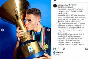 阿斯拉尼社媒寫道:“親愛的國米球迷們,現(xiàn)在是向大家告別的時候了,相信我,找到合適的言辭真的不容易。穿上國米的球衣是我兒時懷揣的夢想,那時我懷著滿心的崇拜為國米球員們加油。