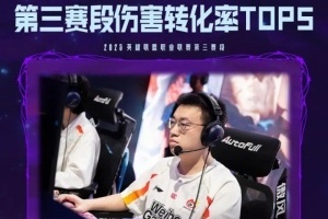 在第三賽段傷害轉(zhuǎn)化率TOP5中,Xiaohu以197.1%的傷害轉(zhuǎn)化率位列第一;Knight以191.0%的傷害轉(zhuǎn)化率位列第二;Rookie和TheShy 以187.4%的傷害轉(zhuǎn)化率并列第三。