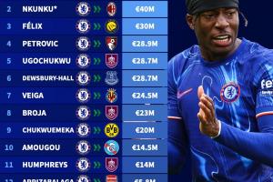 9:丘庫(kù)埃梅卡 中場(chǎng) 2000萬(wàn)歐元 切爾西→多特蒙德