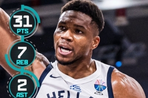 此役,希臘球星字母哥出戰(zhàn)29分02秒,投籃20中14,罰球4中3,砍下31分7板2助1斷,另有5次失誤,正負值-3。