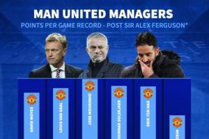 后弗格森時代曼聯(lián)主帥場均得分↓