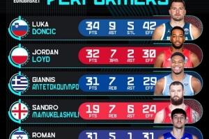 第二個(gè)比賽日,東契奇砍下34分9籃板5搶斷,喬丹-勞埃德砍下32分2助攻,字母哥砍下31分7籃板2助攻,馬穆凱拉什維利得到19分7籃板6助攻,索爾金砍下31分5籃板1蓋帽。