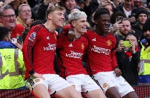 2024年2月曼聯(lián)3-0戰(zhàn)勝西漢姆聯(lián),比賽第49分鐘加納喬破門后,與霍伊倫、梅努一起坐到廣告牌上慶祝,一度讓人看到了曼聯(lián)的未來。但僅僅一年半過去后,三人便可能在今夏一起離開球隊(duì),令人唏噓。