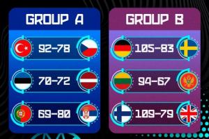 體育資訊08月30日訊 男籃歐錦賽第三日六場(chǎng)比賽全部結(jié)束。賽果如下: