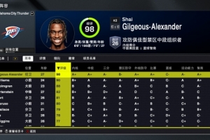 體育資訊8月30日訊 今日NBA 2K26正式發(fā)布,雷霆隊球員能力值如下: