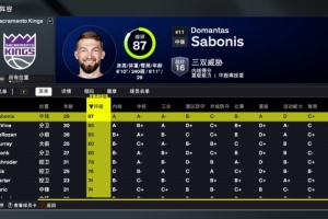 體育資訊8月30日訊 NBA2K26各隊(duì)球員能力值出爐,其中國王詳情如下: