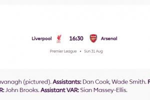 體育資訊08月31日訊 英超官方宣布,今天利物浦vs阿森納的裁判組調(diào)整,原VAR裁判薩爾斯布里被更換為約翰-布魯克斯。