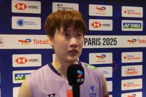 陳雨菲:其中從昨天結(jié)束之后到剛上場(chǎng)前,我已經(jīng)吃了八顆止疼藥,但還是有些影響。其實(shí)疼痛已經(jīng)不是那么明顯了,醫(yī)生已經(jīng)把我的腳固定住了,不會(huì)亂動(dòng),但是因?yàn)樗俣群芸?,所以如果每次我都要跟上她的速度的時(shí)候,就會(huì)變得有點(diǎn)困難。
