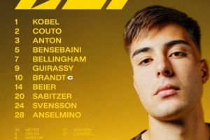 多特首發(fā):1-科貝爾、2-揚(yáng)-庫托、3-安東、5-本塞拜尼、7-喬布-貝林厄姆、9-吉拉西、10-布蘭特、14-拜爾、20-薩比策、24-斯文松、28-安塞爾米諾