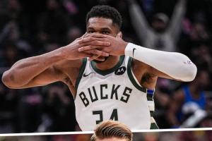 夢幻聯(lián)動!字母哥在戰(zhàn)勝尼克斯的比賽中模仿約克雷斯面具慶祝
