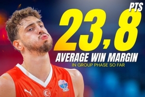 根據(jù)數(shù)據(jù)統(tǒng)計(jì),這波4連勝期間,土耳其男籃場(chǎng)均贏23.8分。