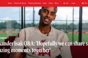體育資訊9月2日訊 利物浦已經(jīng)官宣引進(jìn)紐卡中鋒伊薩克,后者也接受了俱樂部官網(wǎng)的問答采訪。
