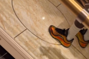 詹姆斯曬出他上腳Nike LeBron 23“黃金4萬分”配色個(gè)人第23代簽名戰(zhàn)靴的自拍,并評(píng)論道:“????”