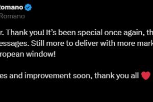 體育資訊09月02日訊 今天凌晨,歐洲五大聯(lián)賽夏季轉(zhuǎn)會(huì)窗正式關(guān)閉,名記羅馬諾發(fā)文感謝球迷。