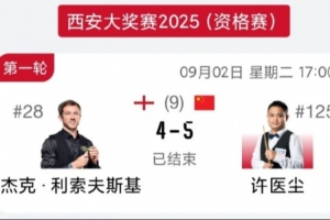 體育資訊9月2日訊 2025斯諾克西安大獎賽,職業(yè)新人許醫(yī)塵5-4逆轉(zhuǎn)戰(zhàn)勝利索夫斯基。