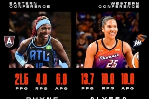 體育資訊9月3日訊 今日WNBA官方宣布,亞特蘭大夢想球員萊恩-霍華德、鳳凰城水星球員艾莉莎-托馬斯分別當選第13周東西部周最佳球員。