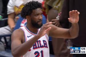 致敬前隊友!恩比德末節(jié)坐在板凳上看隊友追回16分拖進加時!