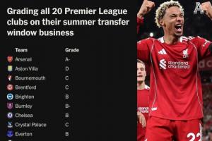 體育資訊09月03日訊 25/26賽季夏窗關(guān)閉,TA為英超20隊今夏的轉(zhuǎn)會操作評級,利物浦A,阿森納A-,切爾西、曼聯(lián)和熱刺B,曼城B-。