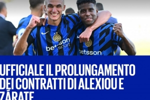 體育資訊9月3日訊 國(guó)米官方宣布和兩名小將克里斯托斯-亞歷克西烏(Christos Alexiou)和迪蘭-薩拉特(Dilan Zárate)續(xù)約兩年。
