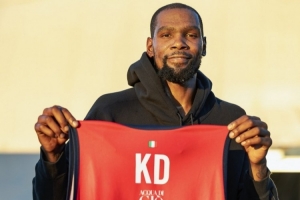 米蘭阿瑪尼在社媒曬出杜蘭特手持球衣的照片,并配文:“紅色真適合你,KD 。感謝你的到訪?!?/p>