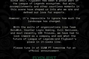 體育資訊9月5日訊 今日,美洲賽區(qū)俱樂部FlyQuest在X上發(fā)文,疑似將退出聯(lián)賽。