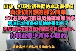 shanji:打職業(yè)很殘酷的成功率很低,真沒你們想的那么簡單,20宗師你的簡歷會被當成廁紙,奶油已經(jīng)準備看幫他坤哥出氣了,奶油會幫坤哥處理掉那些欺負過他的人