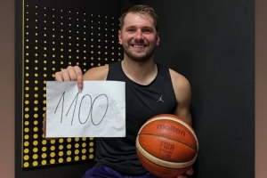 東契奇賽后在更衣室手拿寫(xiě)著1100分的照片,他本人也進(jìn)行了轉(zhuǎn)發(fā)。