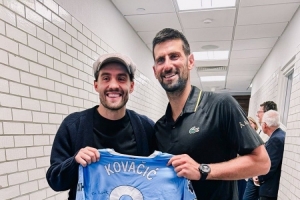 科瓦西奇因為此前接受手術(shù),目前仍然在恢復(fù)當中,他也借此機會前往美國觀看美網(wǎng),與德約科維奇合影并將自己的曼城球衣贈送給他。