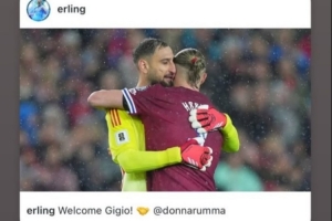 哈蘭德此前在社交媒體曬出自己與多納魯馬擁抱的照片,并配文:“歡迎你,多納魯馬!”