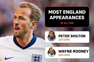 統(tǒng)計表明,這是凱恩生涯第108次為英格蘭出場,現(xiàn)在他已經(jīng)成為英格蘭隊史出場第五多的球員,僅次杰拉德(114)、貝克漢姆(115)、魯尼(120)和希爾頓(125)。