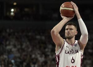此役拉脫維亞球星波爾津吉斯表現(xiàn)非常出色,打了33分鐘22投10中,三分8中4、罰球15中10砍下全場最高34分19籃板外加1助攻1搶斷2蓋帽,正負值-10。