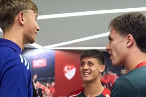 西班牙隊(duì)官方社媒曬出視頻,西班牙后衛(wèi)赫伊森賽前與土耳其國(guó)腳居勒爾、伊爾迪茲見(jiàn)面寒暄。