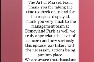 “致巴黎迪士尼樂園管理團隊,親愛的各位,我們對紐約迪士尼酒店-漫威藝術的支持和關懷表示感謝。感謝你們抽出時間關心我們,并展現(xiàn)出尊重。我們也非常感謝巴黎迪士尼樂園的管理團隊,我們真誠地感激你們對此事件的重視以及所采取的必要措施。