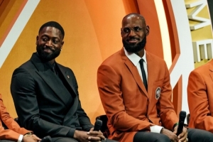 熱火官推曬出了此次一同入選名人堂的球隊名宿韋德、詹姆斯、波什在名人堂現(xiàn)場的合影,并寫道:“那支08年奧運會的球隊很特別。”