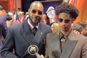在這個(gè)榮耀時(shí)刻,安東尼和兒子基揚(yáng)合影,拍照留念。