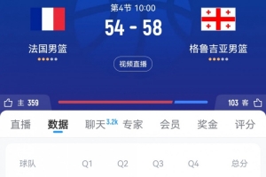 體育資訊9月7日訊 男籃歐錦賽1/8決賽,格魯吉亞男籃三節(jié)打完58-54領(lǐng)先法國(guó)男籃。