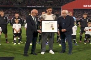 體育資訊9月8日訊 德國(guó)隊(duì)在本輪世預(yù)賽主場(chǎng)迎戰(zhàn)北愛(ài)爾蘭,主隊(duì)賽前為退役的老將胡梅爾斯舉辦了致敬儀式。