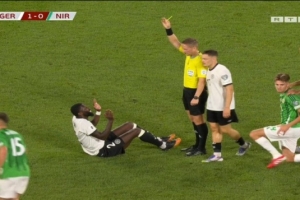 呂迪格被對手撞倒在地,但被吹罰為阻擋犯規(guī),下輪德國主場對陣盧森堡時將累計黃牌停賽。