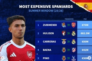 體育資訊9月8日訊 今夏主流聯(lián)賽轉(zhuǎn)會(huì)窗已經(jīng)關(guān)閉,《轉(zhuǎn)會(huì)市場(chǎng)》也列出了西班牙球員的今夏轉(zhuǎn)會(huì)費(fèi)最貴情況。