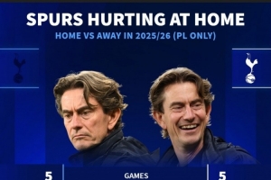 主場蟲+客場龍!熱刺本賽季英超主場1勝1平3負(fù),客場4勝1平