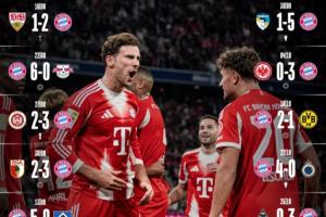 15場怒砍54球!拜仁15連勝僅2場低于3球,下周打巴黎月底打阿森納