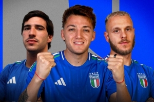 意大利國(guó)家隊(duì)官方社媒發(fā)布為此役制作的海報(bào),雷特吉、托納利以及迪馬爾科出鏡。