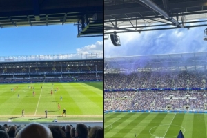 我們現(xiàn)場(chǎng)已經(jīng)在新球場(chǎng)進(jìn)行了幾場(chǎng)比賽,讓我們看看希爾-狄金森球場(chǎng)與之前古迪遜公園球場(chǎng)的視野相比如何。