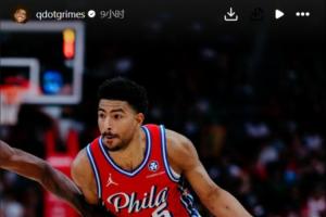 格萊姆斯在9個小時前突然在Instagram更新了一則動態(tài),曬出了一張自己上賽季身穿76人球衣的賽場照。