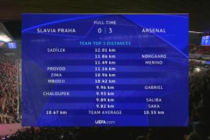 阿森納球員本場跑動距離榜:諾爾高11.86km最多,梅里諾次席