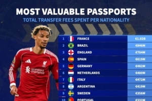 附夏窗各國(guó)球員總轉(zhuǎn)會(huì)費(fèi)榜: