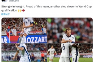 凱恩社媒曬出比賽照片,配文:“今晚大獲全勝,為球隊感到驕傲,距離晉級世界杯又近了一步?!?/p>
