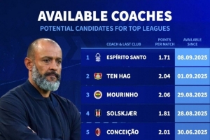 體育資訊9月10日訊 德國(guó)轉(zhuǎn)會(huì)市場(chǎng)盤(pán)點(diǎn)了目前賦閑的教練,穆里尼奧、滕哈赫、哈維、努諾在列。
